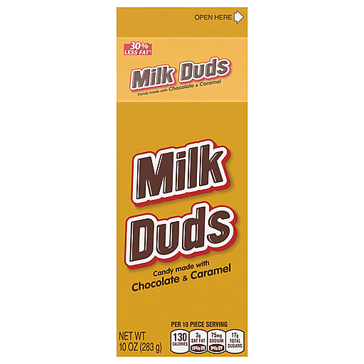 MILK DUDS caramel and chocolate candy treats are well loved for a reason. Try the classic bite size confections that have delighted candy lovers for decades. Made of chewy caramel covered in delectable chocolate candy, every piece is a delicious treat you can snack on and share with those around you. A kosher and gluten free treat, MILK DUDS candy is a classic movie snack, and they're a perfect option for your work, home and on the go sweets. Fill your candy dish with delicious chocolate candies for parties and get togethers. You're sure to please your nearest and dearest with chewy MILK DUDS caramel chocolate candy no matter what day of the week it is. This box of candy is sealed for convenient storage, easy gifting and quick snacking, so get your taste buds ready! Use this box of chocolate candies as a festive stocking stuffer or candy dish filler at holiday parties. Hand full boxes out to trick-or-treaters at Halloween or at your annual costume party. Give your special someone a delicious caramel classic for Valentine's Day and prepare for Easter with baskets that include these candy boxes. In between the holidays, MILK DUDS candy makes all of the ordinary moments a little more special, too.